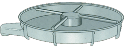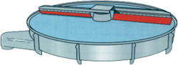 轉刷清網(wǎng)系統(tǒng)依靠布置在篩網(wǎng)下的毛刷旋轉清網(wǎng),適用于球形、結晶體以及脆性物料,此機構轉刷的支持臂由安裝在底盤上的減速器驅動。